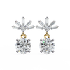 Make a dazzling statement with the Radiant Burst Drop Earrings by Finora Jewelry. These striking earrings feature a fan-like burst of shimmering baguette-cut diamonds (~0.17ct) arranged around a round center stone, paired with a gracefully suspended round drop diamond (~0.69ct) below.