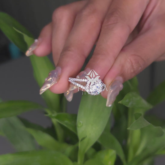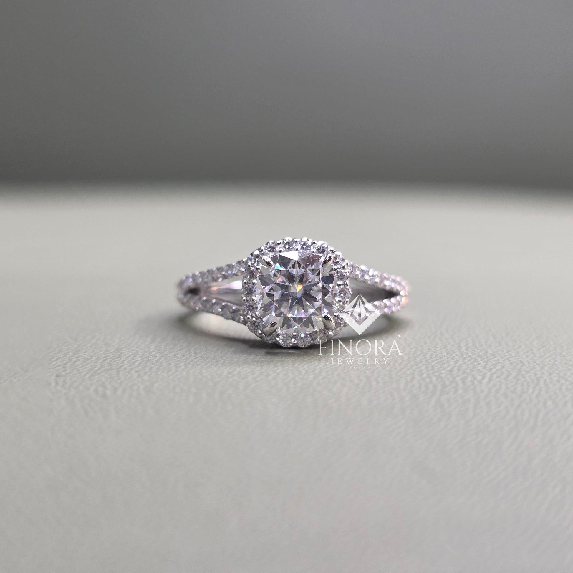 1.50 CT Cushion Cut Moissanite Halo Engagement Ring with Split Shank | 925 Silver & 10K/14K Gold | Finora Jewelry
