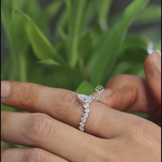 Pear Cut Diamond Engagement Ring with Accent Band – Finora Jewelry