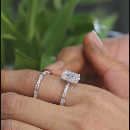 Round & Baguette Cut Moissanite Half Eternity Wedding Band, Stackable Ring – Finora Jewelry
